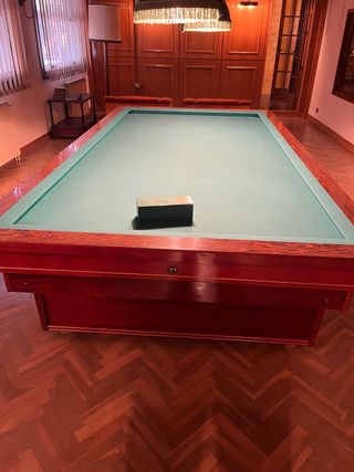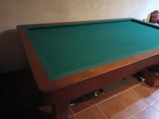 Mesa de billar de estilo español, ideal para disfrutar en casa. tapiz muy bien conservado NEGOCIABLE - Cubierta protectora incluida. - Base resistente.