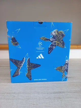 Balón de fútbol con diseño inspirado en la Champions League de Adidas. - Diseño con estrellas y leones. - Logo de la Champions League. - Logo de Adidas. - Web de Adidas Football.