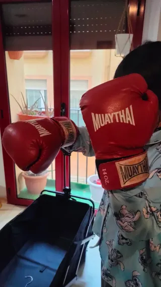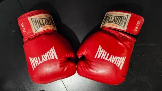 Par de guantes de boxeo Muay Thai en color rojo. - Marca: Muay Thai - Tamaño: 14 oz - Color: Rojo