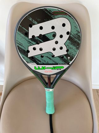 Pala de pádel Royal Padel modelo Whip 2025. Diseñada con un acabado llamativo y moderno. La pala tiene poco uso (tiene una rascada de pintura en la parte superior totalmente superficial) - Núcleo de Polietileno. (Ideal para gente que sufre de epicondilitis) - Marco con tecnología de absorción de impactos. - Diseño con detalles en verde y negro.