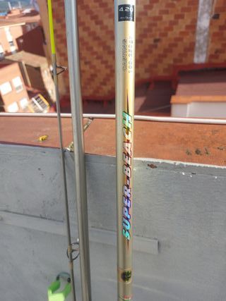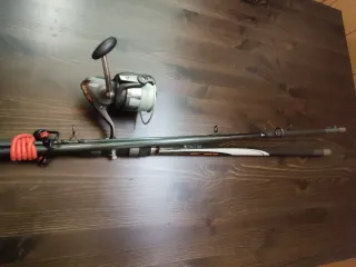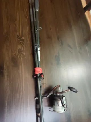 Conjunto de caña de pescar con carrete y línea. Comprada en Decathlon. - Caña de pescar. - Carrete de pesca. - Línea de pesca.