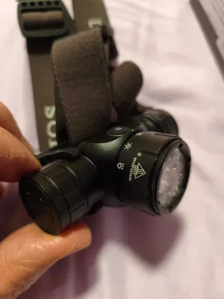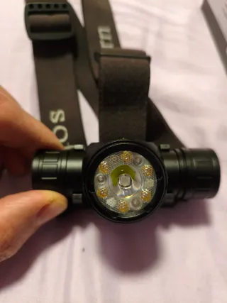Linterna frontal Sofirn HS21 en color negro. - Diseño compacto y ligero. - Correa ajustable para la cabeza. - 2200 lúmenes, superbrillante,luz roja, amarilla y blanca, adecuada para senderismo, montañismo, trabajo e iluminación de emergencia.