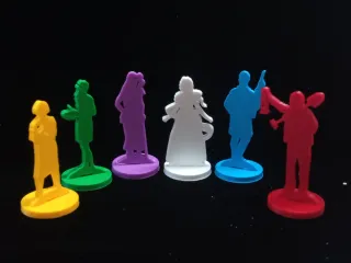 Figuras de plástico para el juego de mesa Investigadores de Arkham: Conspiración de Innsmouth. - Incluye 7 figuras de diferentes colores: amarillo, morado, rojo, azul y verde. - Cada figura representa un personaje del juego.