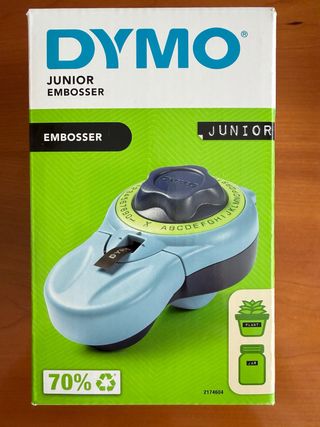 Etiquetadora manual Dymo Junior Embosser. Ideal para organizar y localizar con facilidad documentos y cualquier cosa que requiera identificación. - Incluye rueda con letras y números. Y además 3 cintas sin abrir de diferentes colores. - Diseño compacto y fácil de usar.