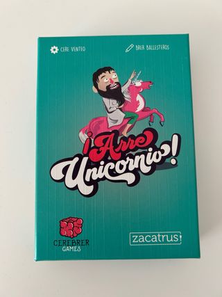 Divertido juego de mesa Arre Unicornio. Ideal para pasar un buen rato. - Ilustraciones de Brer Ballesteros. - Diseño de Cere Venteo. - Editado por Cerebrer Games y Zacatrus!