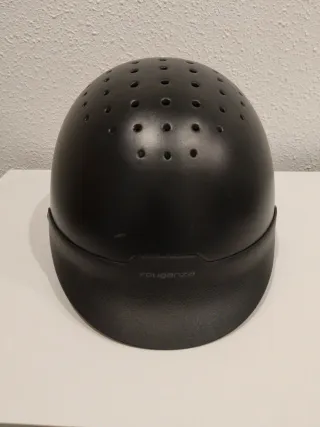 Casco de equitación de la marca Fouganza en color negro. Diseñado para ofrecer comodidad y seguridad. -Talla S - Diseño con múltiples orificios para ventilación. - Visera integrada. - Acabado mate.
