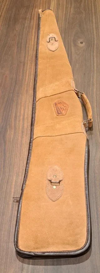 Funda de piel para rifle sin visor de la marca Venator. Fabricada en piel primera calidad con ribetes de piel . - Material: Piel y ante. - Color: Camel y marrón oscuro. - Cierre con cremallera. - Asa de transporte.71.5