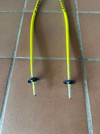 Par de palos de esquí de la marca Scott. - Color amarillo vibrante. - 103cm - Empuñaduras negras. - Correas de sujeción negras. - Diseño con detalles en blanco, azul y amarillo.