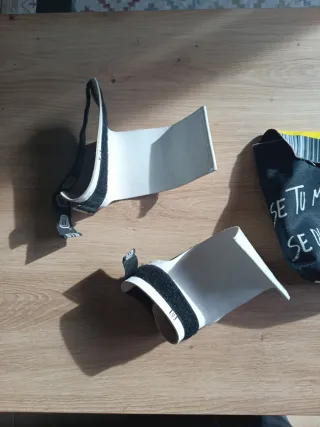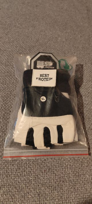 Protecciones para muñecas y manos, ideales para entrenamientos de fuerza. - Material: Cuero sintético. - Cierre: Velcro ajustable. - Talla: M. - Color: Blanco y negro. Incluye funda para guardarlas. Usadas en un par de entrenamientos, como nuevas