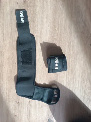 Protecciones para muñecas y antebrazos de la marca Roar, ideales para entrenamiento de fuerza. - Color negro. - Cierre ajustable con velcro. - Material textil. Se han usado unos 3 meses, tiene pequeños roces del uso pero siguen perfectas para el uso