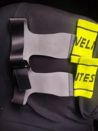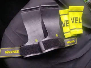 Calleras de la marca Velites, talla L, diseñadas para CrossFit. - Color negro con detalles en amarillo. - Cierre ajustable para mayor comodidad. - Material resistente para un buen agarre.