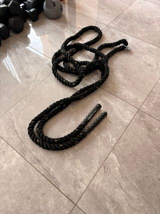 Cuerda de batalla negra, ideal para entrenamientos de crossfit. - Material resistente. - Enrollada para fácil almacenamiento. Vendo o cambio por algo de mi interés. 16 metros. 3 centímetros de grosor.