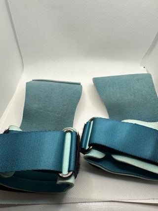 Calleras de CrossFit marca Velites, diseñadas para proteger tus manos. - Material de cuero. - Cierre de velcro ajustable. - Color azul verdoso. Talla L.