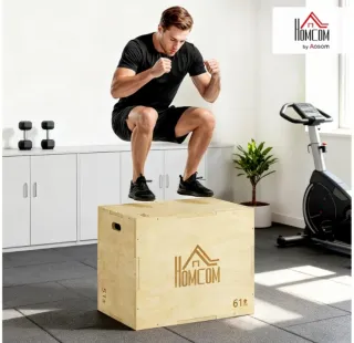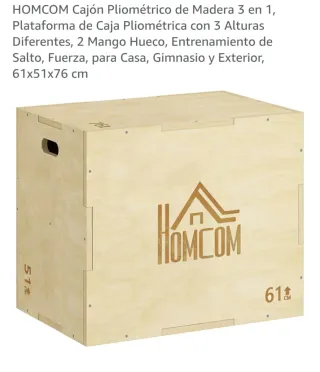 Cajón de madera para entrenamientos de CrossFit, marca Homcom. - Medidas: 61 cm x 76 cm alto - Material: Madera. - Diseño robusto para ejercicios de salto y pliometría.