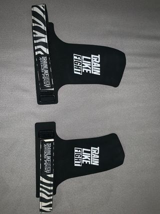 Calleras de gimnasio de la marca Train Like Fight. Tienen muy poco uso aunque se ven así por el talco que se le echa para que no resbalen - Modelo Pure Legend. - Material de cuero. - Cierre de velcro ajustable. - talla M