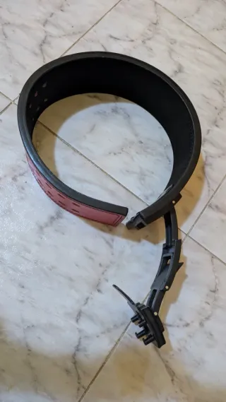 Cinturón de entrenamiento para powerlifting o CrossFit. Diseñado para ofrecer soporte durante levantamientos pesados. - Material: Negro con detalles en rosa. - Cierre: Hebilla de metal. - Diseño: Ancho y contorneado. - Talla XS: 60-75cm - Tamaño: 10cm de ancho y 1'5cm de grosor