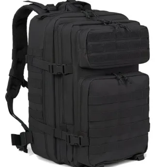 Mochila táctica de grado militar, nylon 1000D, color negro, nueva a estrenar, solo sacada para hacer las fotos, material resistente a rozaduras e impermeabilizado en interior, con sistema molle que permite conectar bolsas y accesorios adicionales en los enganches que trae por toda la maleta, parte superior con velcro para poner más parches, medidas 50x30x30, 50 litros, parche de pvc, abstenerse mareantes y negociadores no contesto, NO NEGOCIABLE ( militar, CrossFit, ejercito, policía nacional, local, guardia civil, senderismo, acampada, rutas, airsoft, escalada, supervivencia, camino de Santiago, caza, pesca)