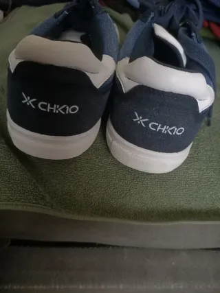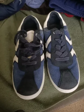 Zapatillas deportivas de tela en color azul y detalles en negro. Perfectas para el día a día. - Talla 38. - Cierre con cordones. - Suela blanca. -Marca CHK10
