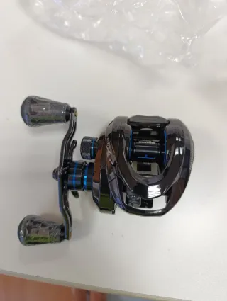 Carrete de pesca para casting modelo kastking crixus plus con un diseño moderno en color negro y detalles en azul. Fue un regalo pero me lo pidieron para zurdos, por eso lo vendo. Nuevo a estrenar