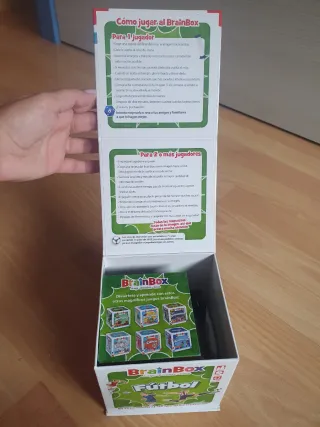 Juego de mesa BrainBox Fútbol, ideal para desarrollar la agilidad mental. - Diseñado para niños de 8 años en adelante. - Partidas de aproximadamente 10 minutos. - Apto para 1 o más jugadores. - Más de 8 millones de juegos BrainBox vendidos mundialmente.