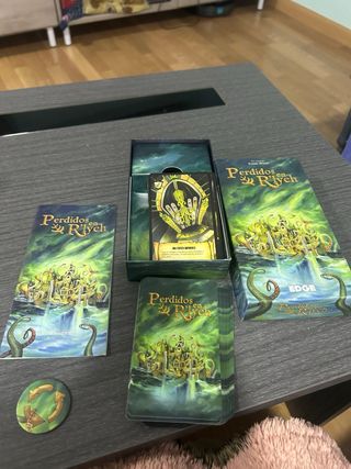 Juego de mesa Perdidos en R'lyeh. - Incluye caja, manual de instrucciones y cartas. - Diseño inspirado en la mitología de H.P. Lovecraft. - Componente con símbolo de reciclaje.