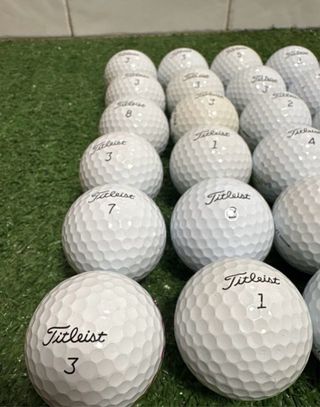 -32 bolas de Grado A y 10 de Grado Perla /A. Grado Perla: Son bolas de golf usadas en un estado inmejorable como si jugaras con bolas nuevas. Algunas bolas pueden tener algún logotipo o marcas de rotulador, estando la bola en un estado impecable, simplemente compruébelo. Grado A: Son bolas recuperadas con algún mínimo roce , no afectando a la bola en su vuelo y toque alrededor del green, en un estado muy bueno, pueden tener alguna marca de rotulador hecha por el mismo jugador, o con algún logotipo.