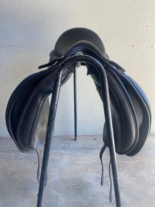 montura silla Bates doma inglesa easy-change system para adaptar medida por tu caballo. ahora tiene herramienta blanca pero puedo cambiar por el negra tambien medida 17" cair system muy bueno estado como bueva, muy poco uso viene con funda original Bates