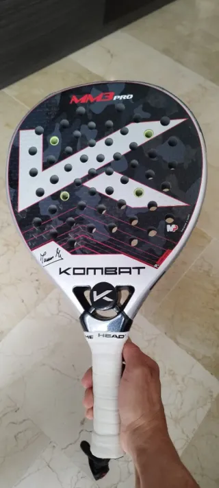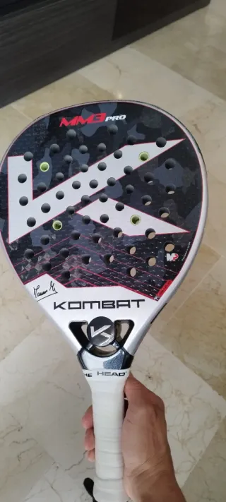 Pala de pádel Kombat MM3 Pro con un diseño moderno y llamativo. - Superficie con acabado mate. - Marco de carbono. - Empuñadura confortable. - Tiene típicos roces del juego, la pala está muy bien conservada. - Se puede enviar más fotos o vídeo, tb aceptaría cambios por alguna pala que esté en las mismas condiciones. - Los dumpeners no están incluidos.