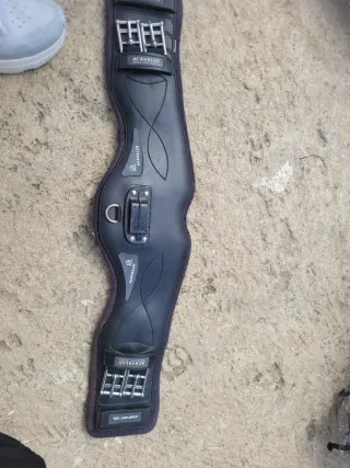 Cincha Acavallo de gel para caballos. Diseñada para ofrecer comodidad. - Material: Gel y cuero. - Color: Negro. - Hebillas metálicas.