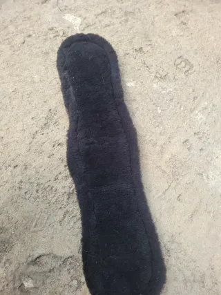 Cincha de doma LeMieux de color negro con forro de borreguillo. - Hebillas de acero inoxidable. - Anilla en D para enganchar accesorios. - Cierre con velcro.