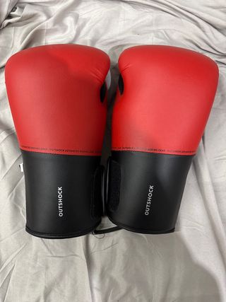 Par de guantes de boxeo de la marca Outshock. - Color rojo y negro. - Cierre de velcro. - Diseño para entrenamiento. Y cuerda para saltar