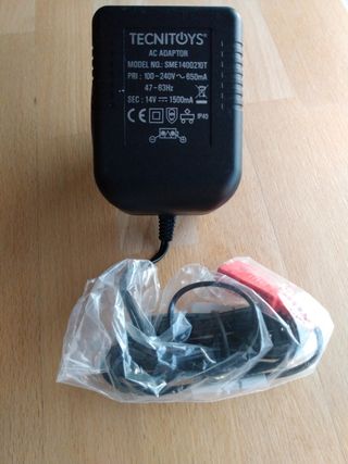 Transformador de corriente alterna a continua para Scalextric SCX. - Modelo: SME1400210T - Entrada: 100-240V~650mA, 47-63Hz - Salida: 14V === 1500mA - Certificación CE - Protección IP40 Compruebe que dispone de la pista de conexiones adecuada.