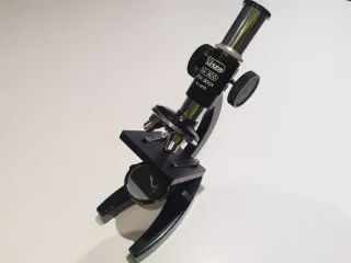 Microscopio Vixen SA-300 con aumento de 90X a 300X. Ideal para iniciarse en el mundo de la microscopía. - Diseño compacto y ligero. - Cuerpo metálico negro. - Incluye objetivo y ocular. - 6 laminas porta objeto y cubreobjetos de vidrio.
