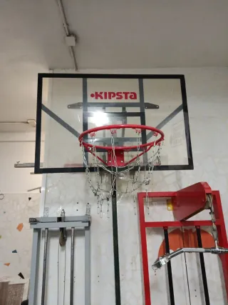 Canasta de baloncesto de la marca Kipsta, ideal para practicar en casa. - Aro rojo. - Red de cadena. - Tablero transparente.