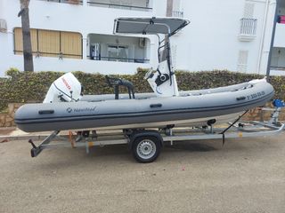 Zodiac Valiant de 4 metros de eslora, ideal para disfrutar del mar. Incluye un motor de 30 caballos , 2 tiempos. Navega muy bien , toda la documentación en regla tanto barco como motor y remolque todo al día Lleva sonda , cañeros , bomba de achique conectada para vivero . luz de navegación Los flotadores no pierden aire Nevera sillón incorporada , lista para salir a navegar . Para 6 personas - Eslora: 4 metros - Motor: 30 CV , 2 tiempos