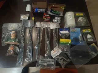Accesorios para aviones rc,nuevos sin uso. Bustos de piloto 1/6 y 1/5 Baterías 4s y 2s Cable de aprendizaje futaba Portahelices motores eléctricos 42 y 50 Hélices 16x6,12x6,11x6 Servos con giro sin fin Depósito Tren trasero para avión de unos 2 metros Y más cosas que se ven en la foto Conos,cable,etc..... Avion,rc, radiocontrol, aeromodelismo