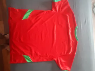 Camiseta de fútbol de Marruecos. - Color rojo con detalles verdes. - Logo de Puma bordado. - Escudo de Marruecos bordado.