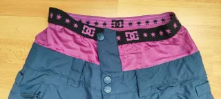 Pantalón de snowboard DC para mujer en talla M. Diseño moderno y funcional. - Cintura elástica para evitar los entrada de la nieve. - Bolsillos laterales con solapa. - Logo de DC en el bolsillo derecho. - Forro interior morado.