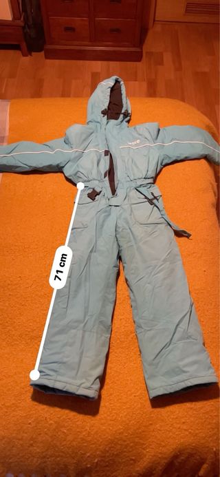 Mono de esquí de color azul, ideal para los más pequeños. Perfecto para disfrutar de la nieve con comodidad. - Talla aproximada para 10 años. - Capucha integrada. - Cierre frontal con cremallera. - Cintura ajustable con cinturón. - Bolsillos laterales.