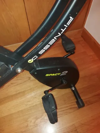Bicicleta estática de la marca Fitness Go, modelo SPACY 2. Diseñada para el ejercicio en casa. - Asiento acolchado. - Manillar con pantalla. - Pedales con agarre. - Resistencia ajustable.