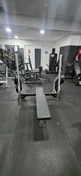Banco plano profesional para gimnasio. Ideal para entrenamientos de fuerza. - Estructura robusta y duradera. - Diseño ergonómico para mayor comodidad.