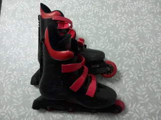 Se venden patines en línea con cuatro ruedas. Talla 36,5. - Diseño en gris y negro. - Cierre con cordones y velcro.