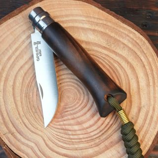 Navaja Opinel N8 nueva, con hoja de acero inoxidable y mango artesanal de madera de haya tratada con nogalina casera y cera de abeja para un acabado suave y super duradero, corta y afeita como una cuchilla