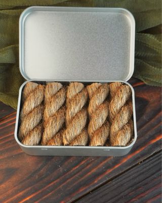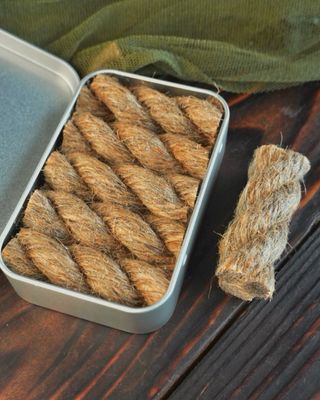 Iniciador de fuego de yute encerado, ideal para actividades al aire libre y bushcraft. Hecho a Mano en el Pais Vasco
