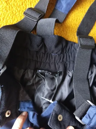 Pantalón de esquí azul con tirantes, ideal para la montaña. - Tejido resistente. - Cremallera lateral. - Tirantes ajustables.