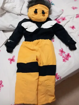 Mono de esquí Dinoski con capucha. - Diseño bicolor amarillo y negro. - Capucha con detalles de antenas de abeja - Ribete de pelo sintético en la capucha. - Cremallera frontal. - Bolsillos con cremallera.