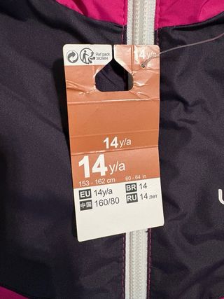 Mono de nieve para niña, perfecto para disfrutar de la montaña. - Talla: 10 años (133-142 cm). - Fabricado en Bangladesh. - Marca: Decathlon.