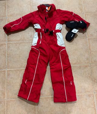 Conjunto de mono de esquí y manoplas para niños de 6 años. 15 euros - Mono a estrenar de esquí de color rojo con detalles blancos. - Incluye un par de manoplas nuevas negras. - Tallas disponibles: 6 años Mono prácticamente nuevo para 12 años. 15 euros - Color rojo - Muy calentito -Ajustable 25 euros los dos