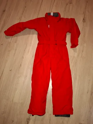 Mono de esquí de color rojo, ideal para actividades en la nieve. Presenta un diseño práctico y funcional. Sólo usado una vez Talla 14 años 160 cm - Cierre frontal con cremallera. - Capucha integrada. - Puños ajustables.