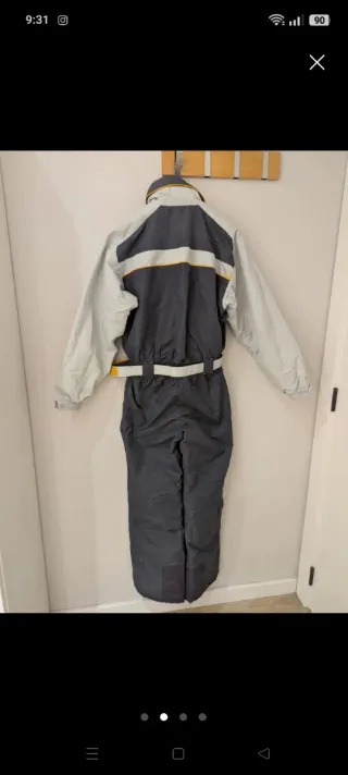 Mono de esquí Quechua, ideal para disfrutar de la nieve. - Diseño en color gris y blanco. - Detalles en amarillo. - Cremallera frontal. - Cinturón ajustable. Como nuevo
